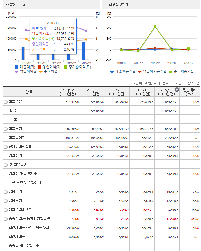 -2023년 3월 전년동기 대비 연결기준 매출액은 2.6% 감소, 영업이익은 22.9% 감소, 당기순이익은 61.6% 감소. 지난 대비 스틸, 레진, 구리 등 주요 원재료 가격 하락으로 동사의 수익성이 개선되었으며 캐시카우인 H&A 사업부 이익 규모가 크게 증가함. VS 사업부는 작년 흑자전환에 성공하며 동사의 차기 성장엔진으로서 고성장 사업무로 주목받고 있음.