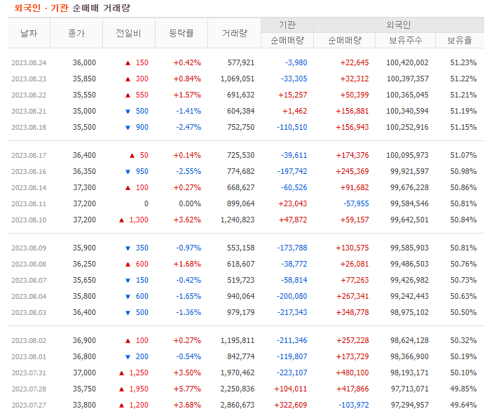 대주 구성 정보는 단기 투자에는 중요하지 않을 수 있지만, 장기적인 투자를 고려하고 있다면 대주 구성과 대표의 정보를 알아두는 것이 좋습니다.