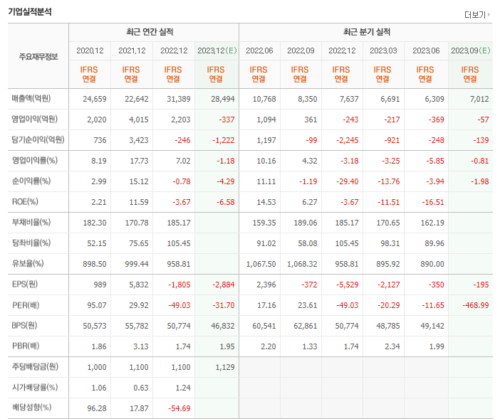 <구리 및 전지박 가격하락으로 실적감소>