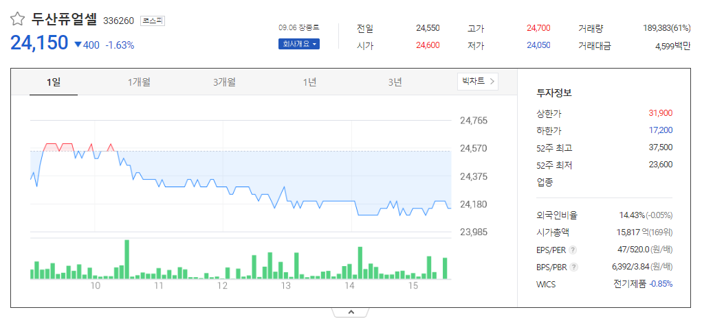 이 글에서는 두산퓨얼셀 주가 전망과 목표 주가, 기업 정보에 대해서 설명합니다. 주식 투자에서 핵심은 미래의 기업 가치를 예상하고 선제적으로 움직이는 것입니다. 투자 대상을 결정하기 전에 현재 기업의 현황과 수치를 검토하는 것이 필요합니다. 두산퓨얼셀 주식의 주요 현황과 투자 정보를 확인하시고 주식 투자에 도움을 줄 자료들을 모아두었으니 참고하여 효율적인 투자를 해보세요..