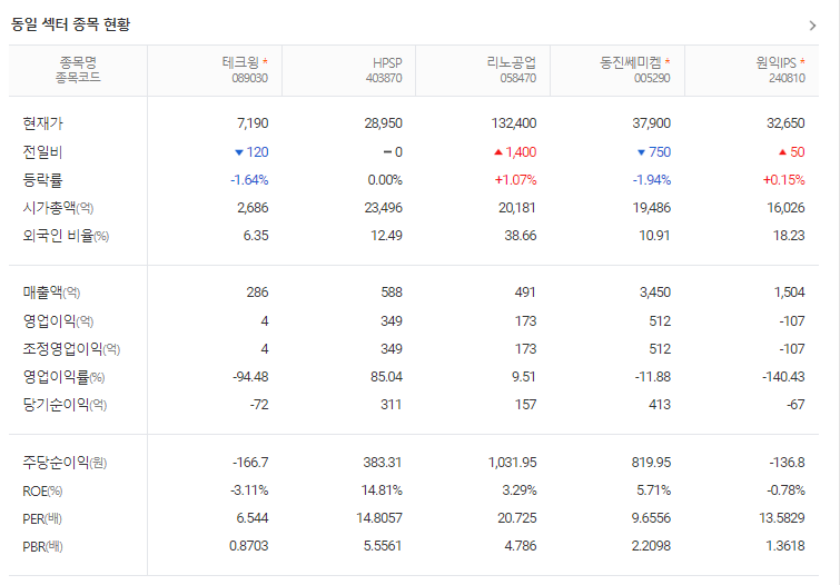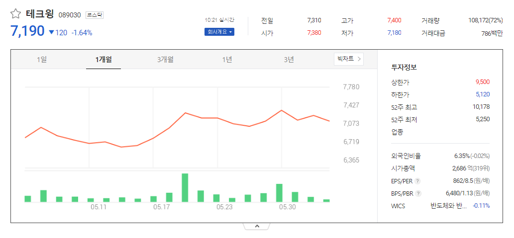 테크윙 주가 전망 상태 시장 흐름 분석