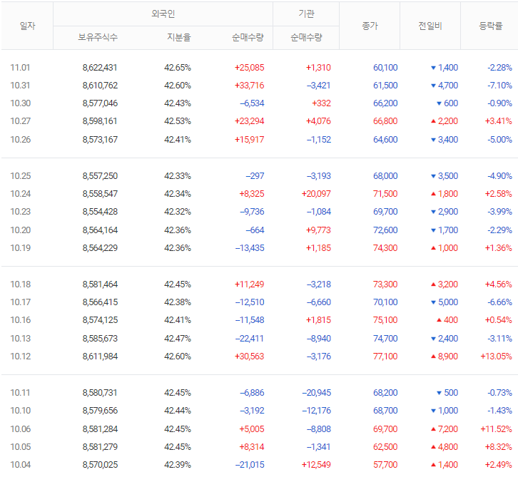 따라서 개인 투자자는 기관이나 외국인 세력을 따라가며, 세력이 약해도 어떤 주식을 매수하고 매도하여 수익을 창출합니다. 최근, 외국인보다 기관 투자자의 움직임을 따르는 경우가 더 많으며, 외국인의 매수가 신뢰성이 낮고 개인의 단기 거래가 기관과 비슷하기 때문입니다.