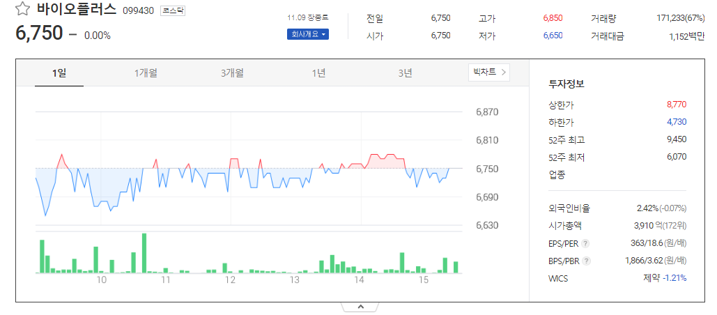 바이오플러스 주가 분석