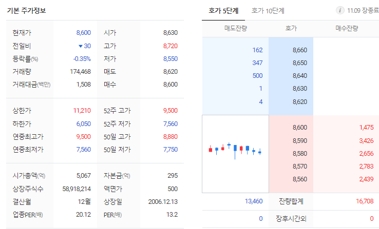 파트론 현재 주가는 8,630원이며 전일 대비 -40원의 모습을 보이고 있습니다. 파트론의 주주현황을 살펴보면 김종구(외 12인)이 지분 25.45%를 소유하고 있습니다. 파트론는 휴대폰 및 관련부품 기업으로 장중 기준으로 주가는 8,630원 입니다. 파트론 시가 총액은 5067억 원이며 발행 주식수는 16.21주 입니다. 외국인 보유 비중은 184,088% 이며 장중 거래량은 58,918,214를 기록했습니다. 매출액은 5,577억 원, 영업이익은 568억 원을 달성했습니다. EPS는 569원이며 파트론 주식 배당수익률은 3.70% 입니다.