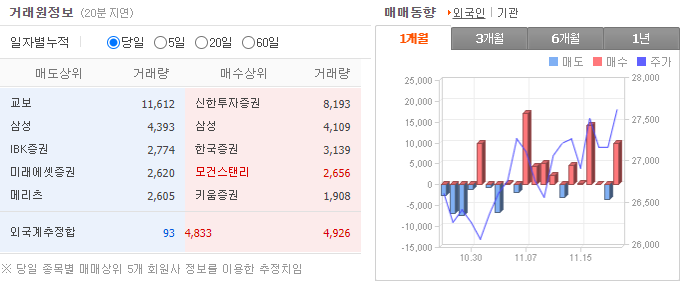 그 때문에 개인 투자자는 기관이나 외국인 세력을 따라 움직이며, 세력이 약해도 어떤 걸 매수하고 매도해 수익을 창출합니다. 최근의 트렌드는 외국인 매수보다 기관 투자자를 따르는 것이 많은데, 이는 외국인의 매수가 허수일 가능성이 있고 개인의 단기 거래가 기관과 유사하기 때문입니다.