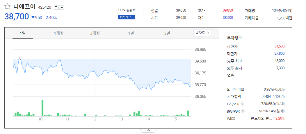 티에프이 현재 주가는 39,650원이며 전일 대비 -1,800원의 모습을 보이고 있습니다. 티에프이의 주주현황을 살펴보면 문성주(외 3인)이 지분 69.47%를 소유하고 있습니다. 티에프이는 반도체 및 관련장비 기업으로 장중 기준으로 주가는 39,650원 입니다. 티에프이 시가 총액은 4422억 원이며 발행 주식수는 0.98주 입니다. 외국인 보유 비중은 248,203% 이며 장중 거래량은 11,381,000를 기록했습니다. 매출액은 347억 원, 영업이익은 65억 원을 달성했습니다. 티에프이 주식 배당수익률은 1.01% 입니다.
