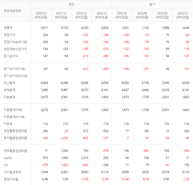 -2023년 9월 전년동기 대비 연결기준 매출액은 12.4% 감소, 영업손실은 65.6% 증가, 당기순손실은 1827.4% 증가. KT&G에 궐련형 전자담배 '릴 하이브리드 Ez'와 액상 카트리지를 양산하여 공급하고 있으며, 전자담배 해외 수출을 개시함. 전자담배 기기는 베트남에서, 카트리지는 국내 및 베트남에서 생산하고 있으며, 해외 고객사에 대한 신속한 영업활동과 대응을 위하여 중국내 영업사무소와 미국 법인을 운영함.