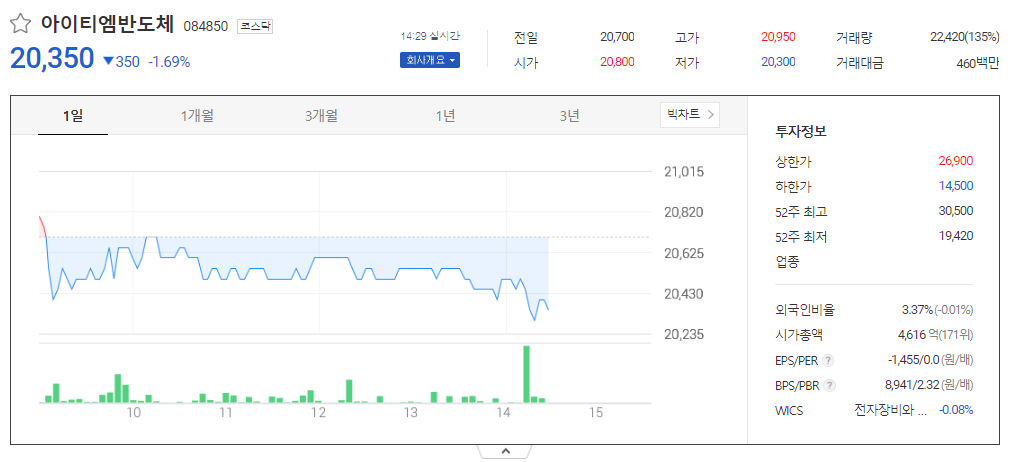 이 글에서는 아이티엠반도체 주가 전망과 목표 주가, 기업 정보에 대해서 설명합니다. 주식 투자의 핵심은 현재의 기업 가치보다는 미래의 가치를 예측하며 먼저 대응하는 것입니다. 투자 대상을 결정하기 위해 먼저 현재 기업 상태와 수치를 검토해야 합니다. 아이티엠반도체 주식의 주요 현황과 투자 정보를 확인하시고 주식 투자에 유용한 정보들을 모아두었으니 투자 결정에 도움을 받으실 수 있을 것입니다..