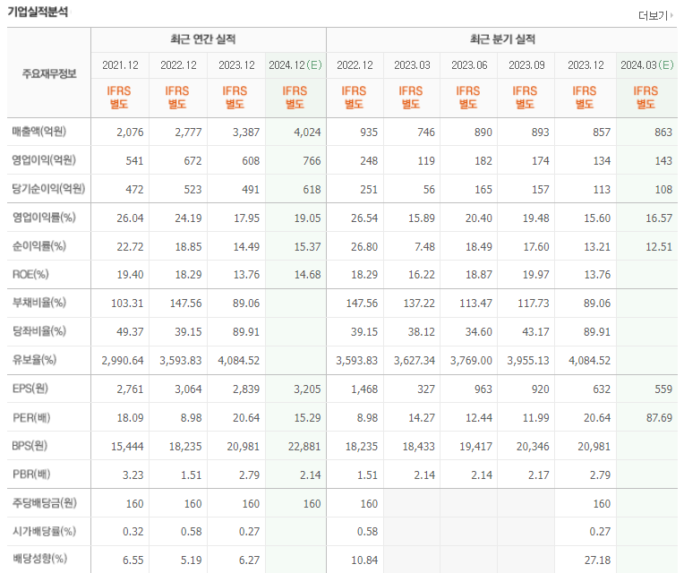 -2023년 9월 전년동기 대비 별도기준 매출액은 37.4% 증가, 영업이익은 12% 증가, 당기순이익은 38.5% 증가. 시스템 반도체의 테스트를 주력 사업으로 영위해 메모리 반도체에 비해 상대적으로 경기 변동의 영향을 덜 받음. 2023년은 테스트 품목 다변화와 CIS 테스트 시간 증가 효과가 분기 실적에 반영될 것으로 예상되고 2024년은 Exynos 재출시와 CIS 기술변화 수혜가 기대됨.