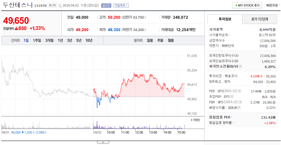 두산테스나 주가 분석