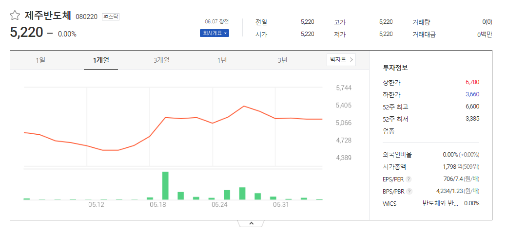 제주반도체 주가 분석