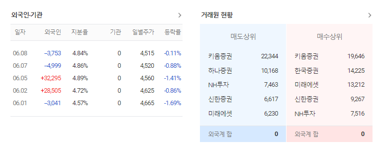 그렇기에 개인 매수 세력은 기관이나 외국인 투자자를 따라갈 수 밖에 없습니다. 힘이 없는 개인 세력들은 이들이 무엇을 매수하고 매도하는지 확인하고 수익을 낼 수 있습니다. 최근 흐름은 외국인보다는 기관 투자를 따라하는 경우가 많습니다. 외국인의 매수는 속임수가 있을 수 있고 개인이 선호하는 단기 매매는 기관투자자가 적합하기 때문입니다.