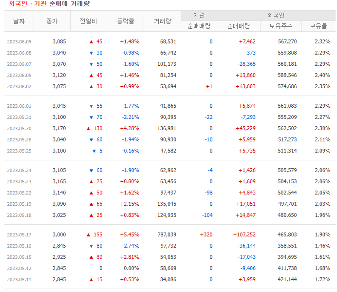 이중에 가장 좋은 것은 기관과 외국인 모두 매수하는 쌍끌이 종목을 찾아서 공략하는 방법입니다. 외국인과 기관이 동시에 매수한다는 것은 그만큼 좋은 종목이라는 뜻입니다. 주식 주가 전망을 분석하려면 먼저 기업체를 분석하고 시장에서 어떤 상태인지 확인해야 합니다. 그리고 기관과 외국인 매수 추세까지 살펴본다면 수익을 낼 확률을 올릴 수 있다고 생각합니다.