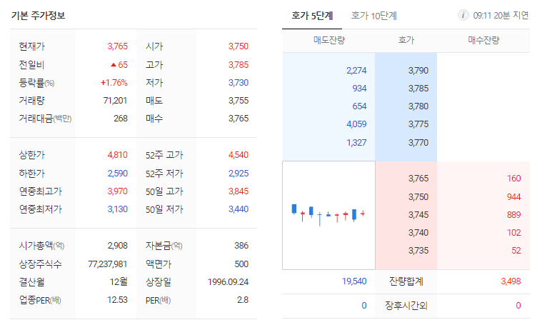 원익홀딩스 현재 주가는 3,700원이며 전일 대비 -55원의 모습을 보이고 있습니다. 원익홀딩스의 주주현황을 살펴보면 원익(외 7인)이 지분 48.85%를 소유하고 있습니다. 원익홀딩스는 반도체 및 관련장비 기업으로 장중 기준으로 주가는 3,700원 입니다. 삼성전자의 시가 총액은 2916억 원이며 발행 주식수는 6.70주 입니다. 외국인 보유 비중은 156,010% 이며 장중 거래량은 77,237,981를 기록했습니다. 매출액은 2,131억 원, 영업이익은 1,050억 원을 달성했습니다. EPS는 없음원이며 원익홀딩스 주식 배당수익률은 0.96% 입니다.