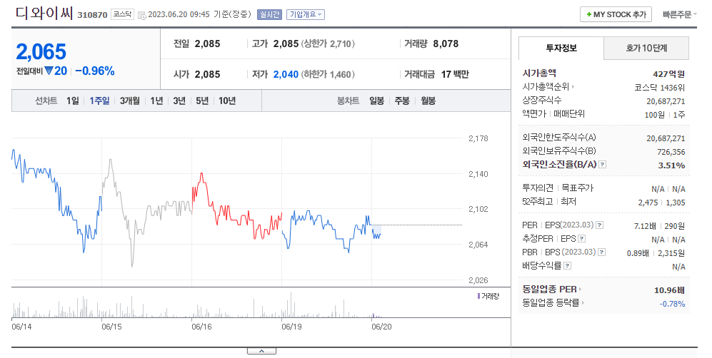 디와이씨 주가 전망 상태 시장 흐름 분석