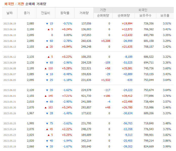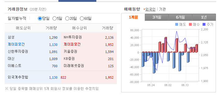 그렇기에 개인 매수 주체는 외국인이나 기관의 투자를 따라가는 방법밖에 없습니다. 세력이 약한 개인 투자자는 외국인과 기관의 매수 매도 흐름을 확인만해도 수익을 낼 수 있습니다. 최근에는 외국인 보다 기관의 흐름을 따라하는 성향이 강합니다. 외국인 세력은 속임수를 쓸 수 있고개인이 원하는 단기 투자는 기관의 투자와 맞기 때문입니다.