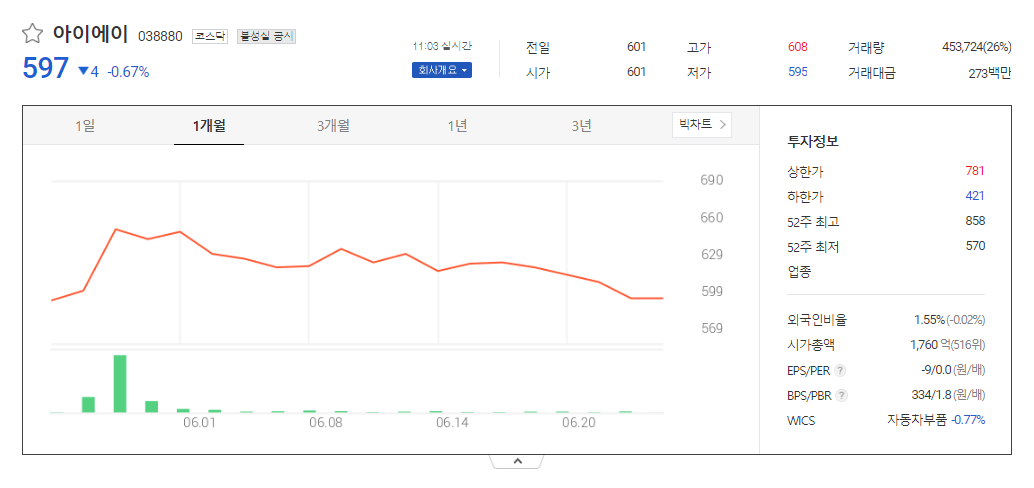 아이에이 주가 전망 확인과 기업 상세 정보
