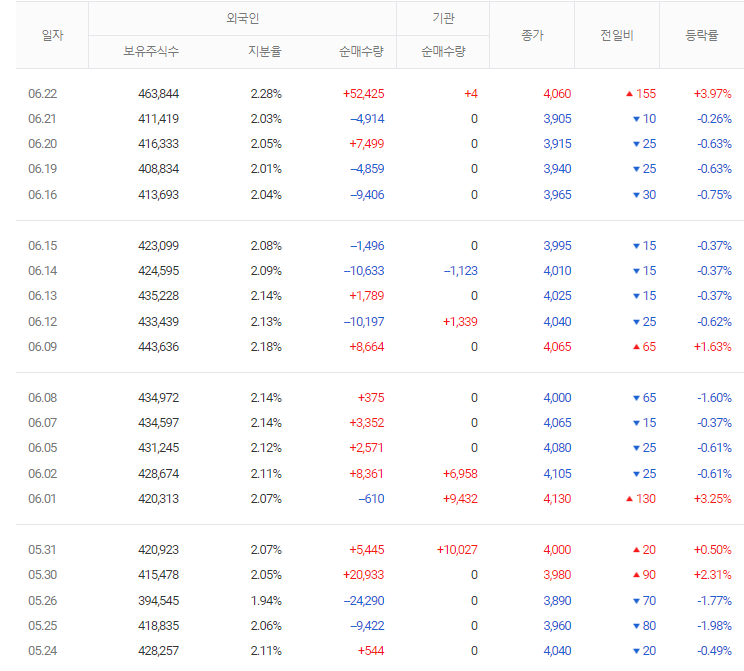 제일 좋은 경우는 기관과 외국인 모두 매수하는 쌍끌이 종목을 집중적으로 공략하는 것입니다. 기관과 외국인이 같이 매수하는 것은 투자하기 좋다는 뜻입니다. 주식 주가 전망을 알아보려면 먼저 기업체를 분석하고 시장에서 흐름을 파악해야 합니다. 그리고 기관과 외국인 매수 흐름까지 살펴본다면 수익을 낼 확률을 올리는 것이 가능합니다.