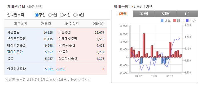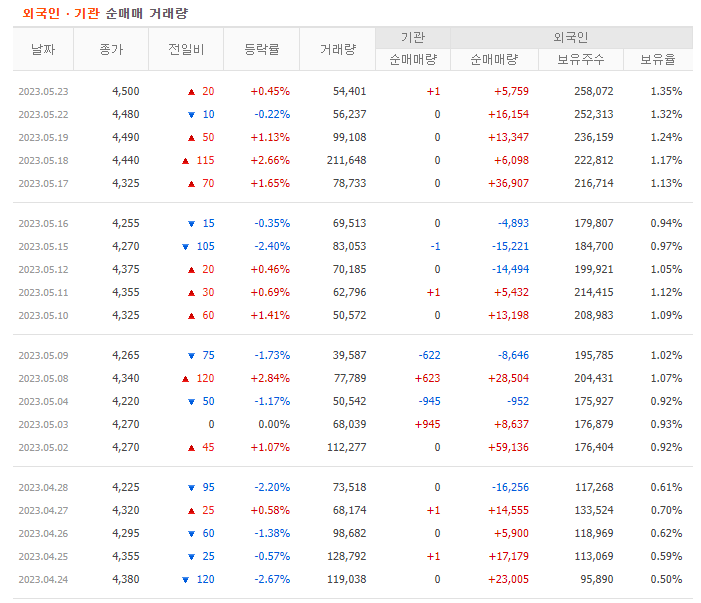 물론 가장 좋은 경우는 외국인과 기관이 같이 매수하는 쌍끌이 종목을 집중적으로 공략하는 방법입니다. 양대 매수주체들이 같이 매수하는 것은 좋은 종목이라는 뜻입니다. 주식 주가 전망을 분석하기 위해서는 기업체 상태를 분석하고 시장 흐름에서의 위치를 확인해야 합니다. 그리고 기관이나 외국인 매수 추세까지 살펴본다면 수익을 낼 확률을 올릴 수 있다고 생각합니다.