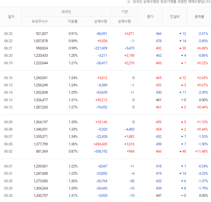 물론 가장 좋은 경우는 외국인과 기관이 같이 매수하는 쌍끌이 종목을 살펴보는 것입니다. 기관과 외국인이 같이 매수하는 것은 좋은 종목이라는 뜻입니다. 주식 주가 전망을 분석하기 위해서는 먼저 기업체를 분석하고 시장 흐름에서의 위치를 분석해야 합니다. 그리고 기관이나 외국인 매수 추세까지 알아본다면 성공 확률을 올릴 수 있다고 생각합니다.