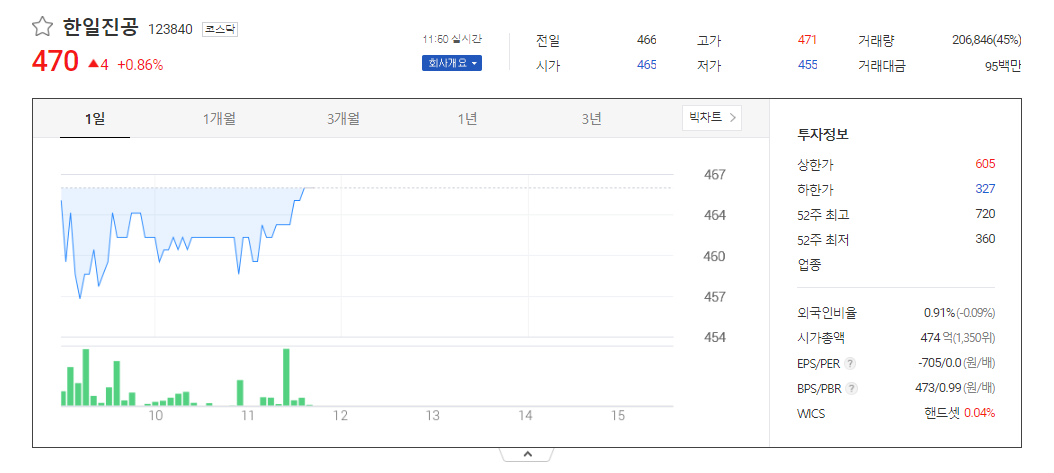 한일진공 주가 분석