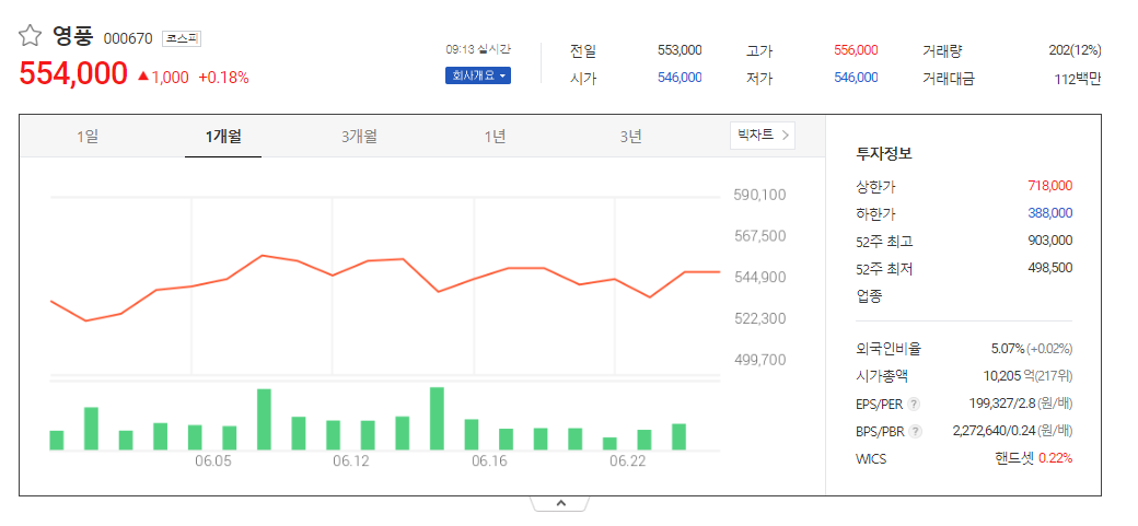 이 글에서는 영풍 주가 전망과 목표 주가, 기업 정보에 대해서 설명합니다. 주식에 투자하기 전에는 기업 현황고 현재 시장 흐름에 대해서 분석하는 것이 필요합니다. 영풍 주식의 주요 현황과 투자 정보를 확인하시고 주가 흐름을 정리해보겠습니다.