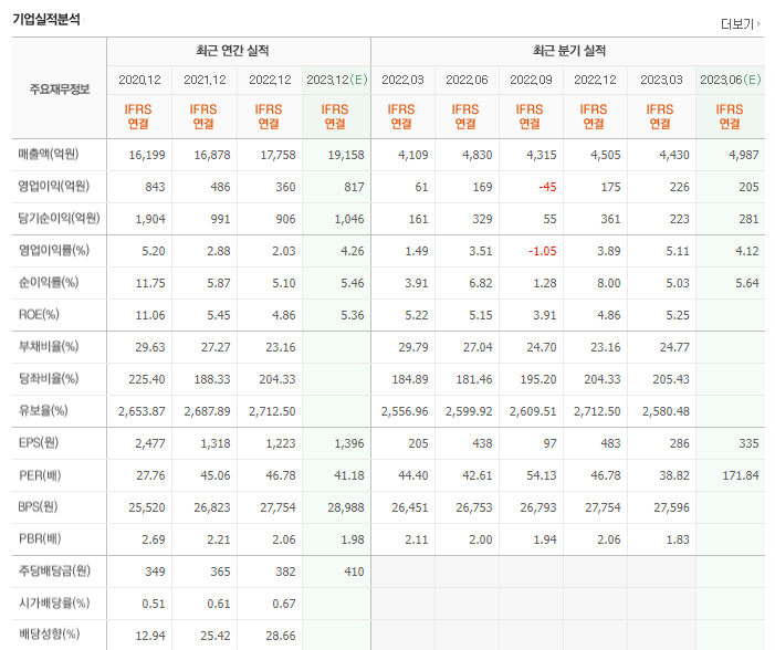 -2023년 3월 전년동기 대비 연결기준 매출액은 7.8% 증가, 영업이익은 270.9% 증가, 당기순이익은 39.5% 증가. 전략적 신제품을 출품함에 따라 판관비가 매출 증가폭보다 적게 증가하였고 제품 매출 및 라이선스 수익 증가와 원가 개선 등으로 영업이익 크게 증가함. 동사는 해외사업부문에서 새로운 파트너사를 발굴하기 위해 비대면 영업 및 마케팅 활동을 강화하고 있음.