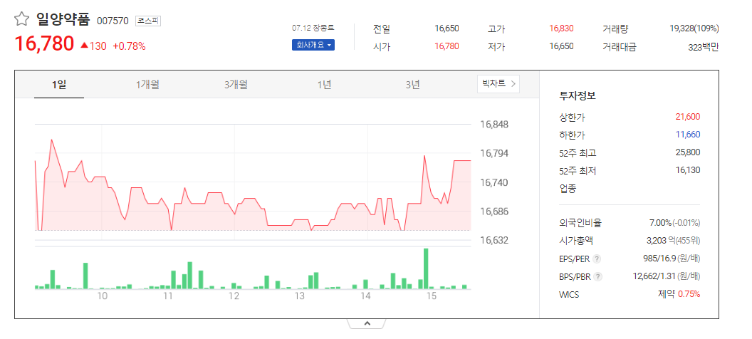이 글에서는 일양약품 주가 전망과 목표 주가, 기업 정보에 대해서 설명합니다. 주식 투자에 앞서 기업의 상태와 주가 정보에 대해서 알아보는 것이 필요합니다. 일양약품 주식의 주요 현황과 투자 정보를 확인하시고 주가 흐름을 파악해보겠습니다.