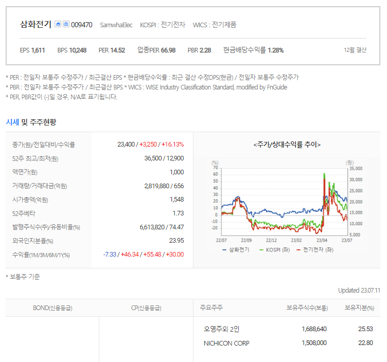 삼화전기 주식 결론