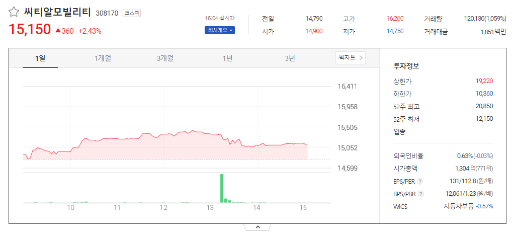 이 글에서는 씨티알모빌리티 주가 전망과 목표 주가, 기업 정보에 대해서 설명합니다. 주식 투자 전에 정확한 기업 정보와 주가 현황에 대해 살펴보는 것은 굉장히 중요합니다. 씨티알모빌리티 주식의 주요 현황과 투자 정보를 확인하시고 지금 시장 흐름을 살펴보겠습니다.