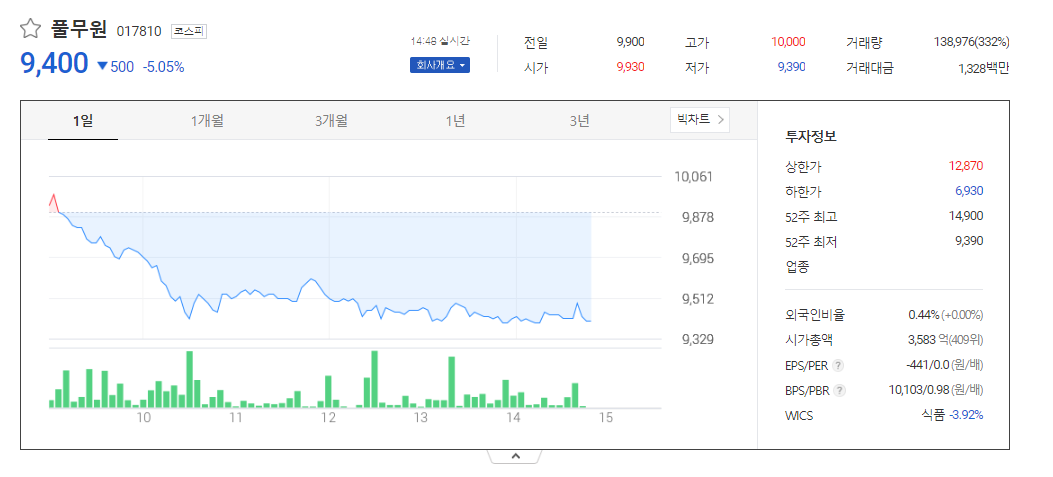 풀무원 주가 분석