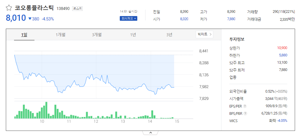 이 글에서는 코오롱플라스틱 주가 전망과 목표 주가, 기업 정보에 대해서 설명합니다. 주식 투자에 앞서 기업 주가와 재무 현황표에 대해서 살펴보는 것이 굉장히 중요합니다. 코오롱플라스틱 주식의 주요 현황과 투자 정보를 확인하시고 현재 시장에서의 위치를 분석해보겠습니다.