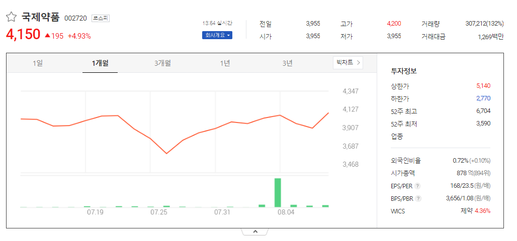 국제약품 주가 분석